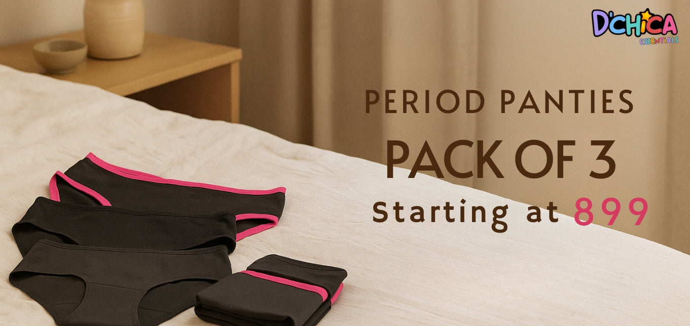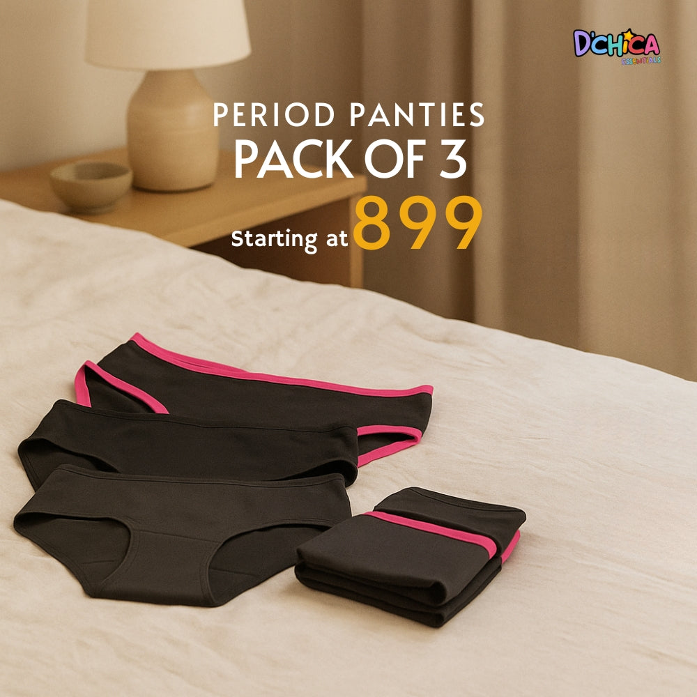 D'CHICA Essentials Assorted Colour Period Panties | No Pad Needed | Rash Free | Leakproof | Reusable | Pack of 3
