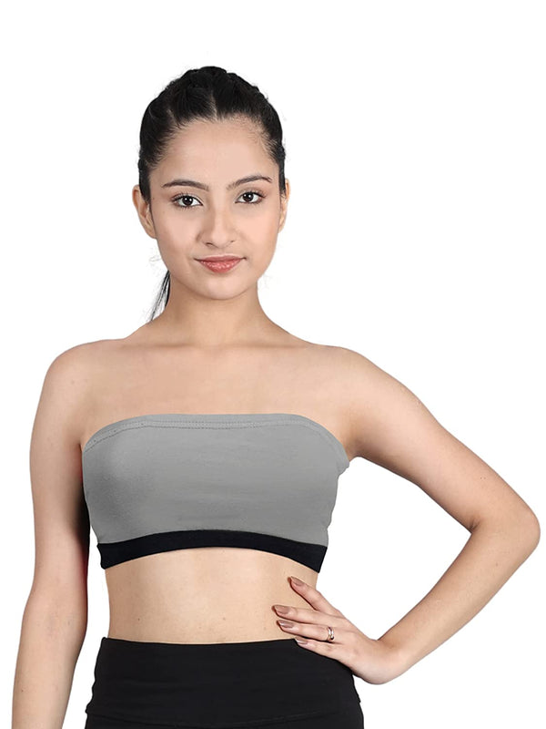 D'CHICA Essentials Super Saver Broad Strap Cotton Gym Bra for Women | Removable Pads | Elasticated Underbrand | Good Support | Full Coverage Pack of 2 | Grey & Skin Sports Bra