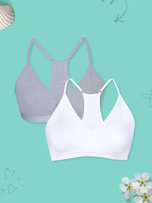D'CHICA Essentials Super Saver Broad Strap Cotton Gym Bra for Women | Removable Pads | Elasticated Underbrand | Good Support | Full Coverage Pack of 2 | White & Grey Sports Bra