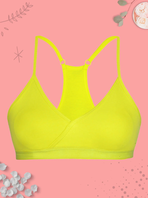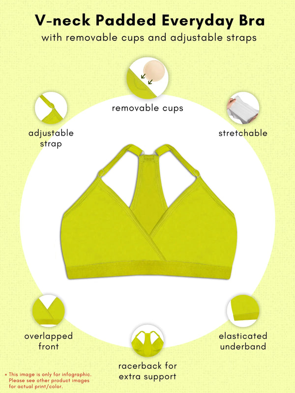 D'CHICA Essentials V-Neck Neon Green Bra with Removable Cups & Customizable Straps