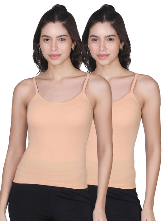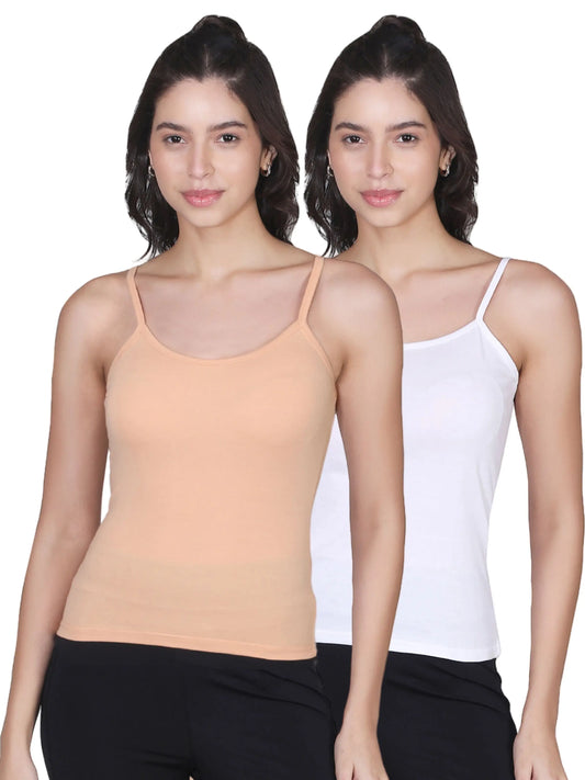 D'CHICA Essentials Skin & White Basic Cotton Camisole for Women Pack of 2, Soft, Sleeveless, Lightweight, and Perfect for Everyday Wear