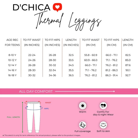 D'CHICA Essentials Regular Fit Warm Thermal Set | Pink Winterwear For Girls | Set of 1