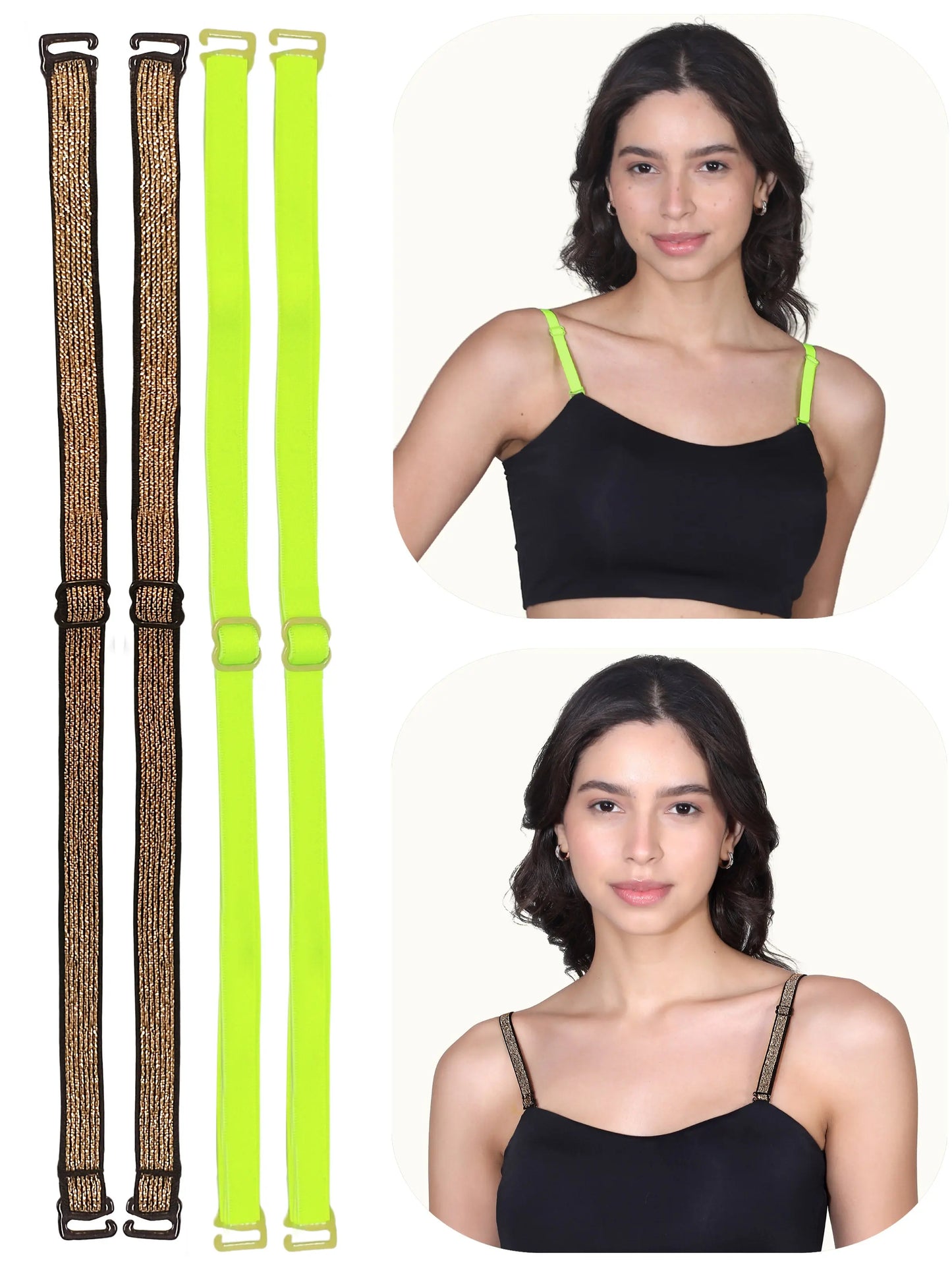 D'CHICA Essentials Adjustable Cotton Bra Strap | Durable Straps for Bra | Neon Yellow & Golden