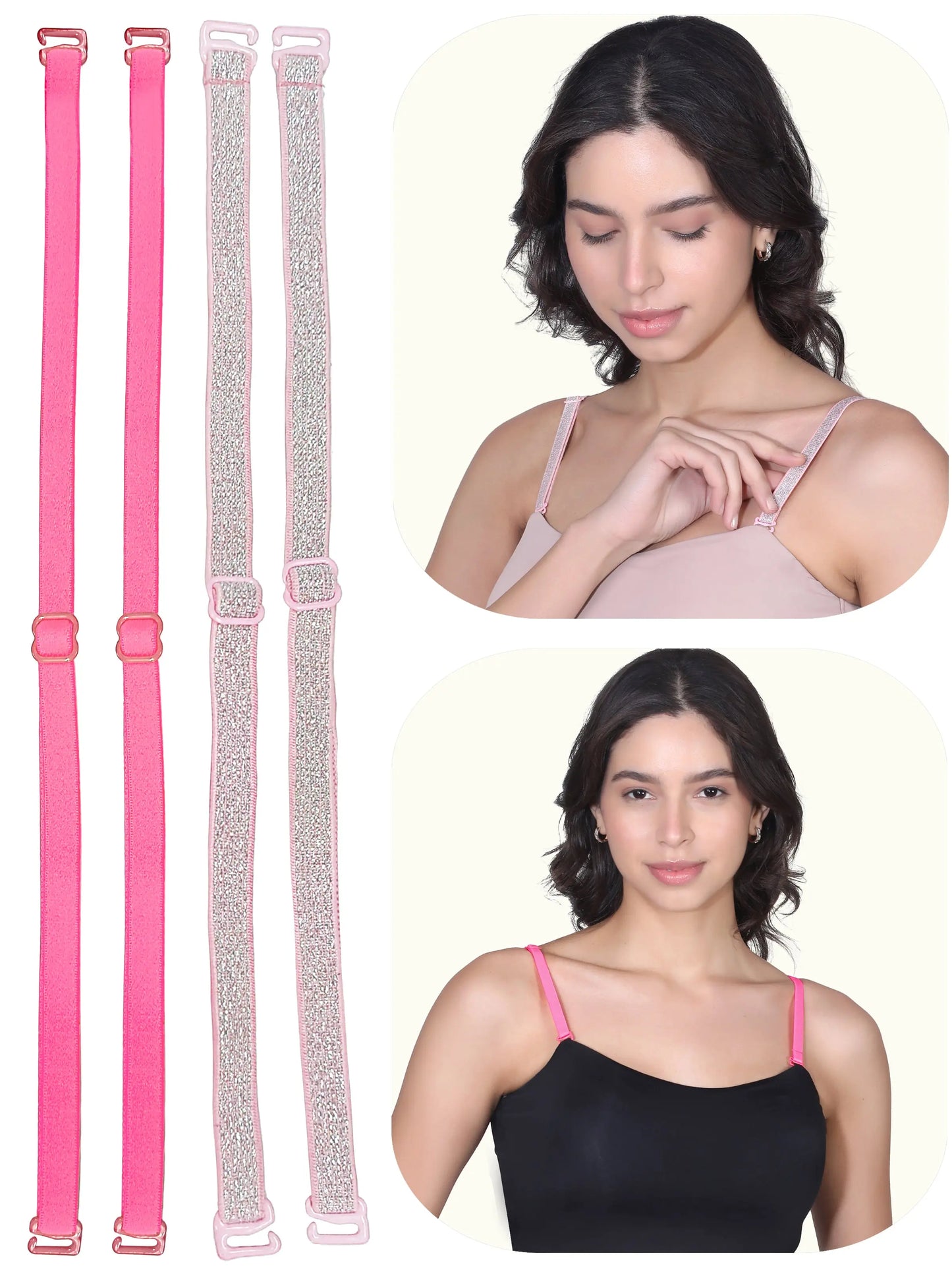 D'CHICA Essentials Adjustable Cotton Bra Strap | Durable Straps for Bra | Neon Pink & Silver