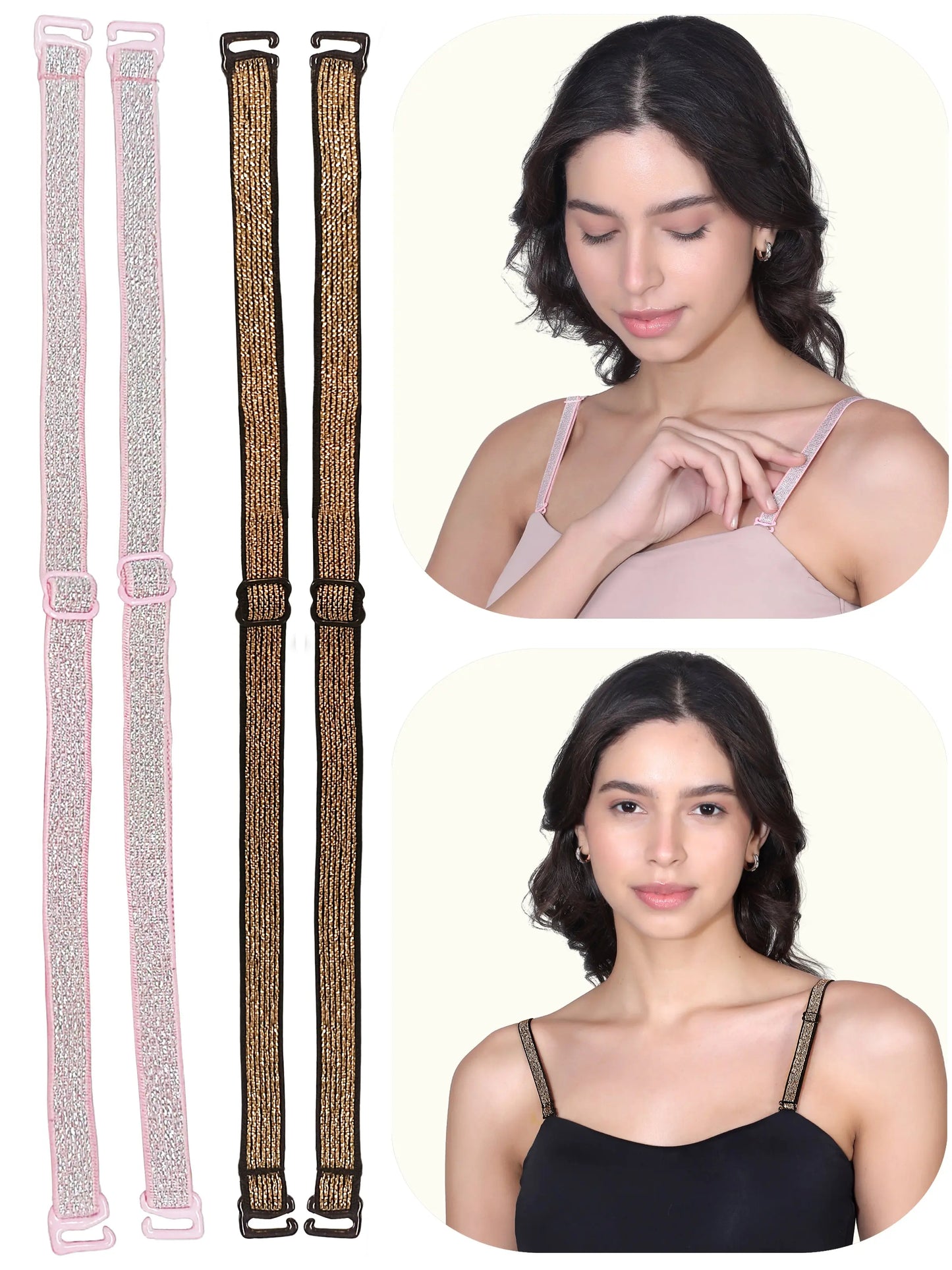 D'CHICA Essentials Adjustable Cotton Bra Strap | Durable Straps for Bra | Silver & Golden