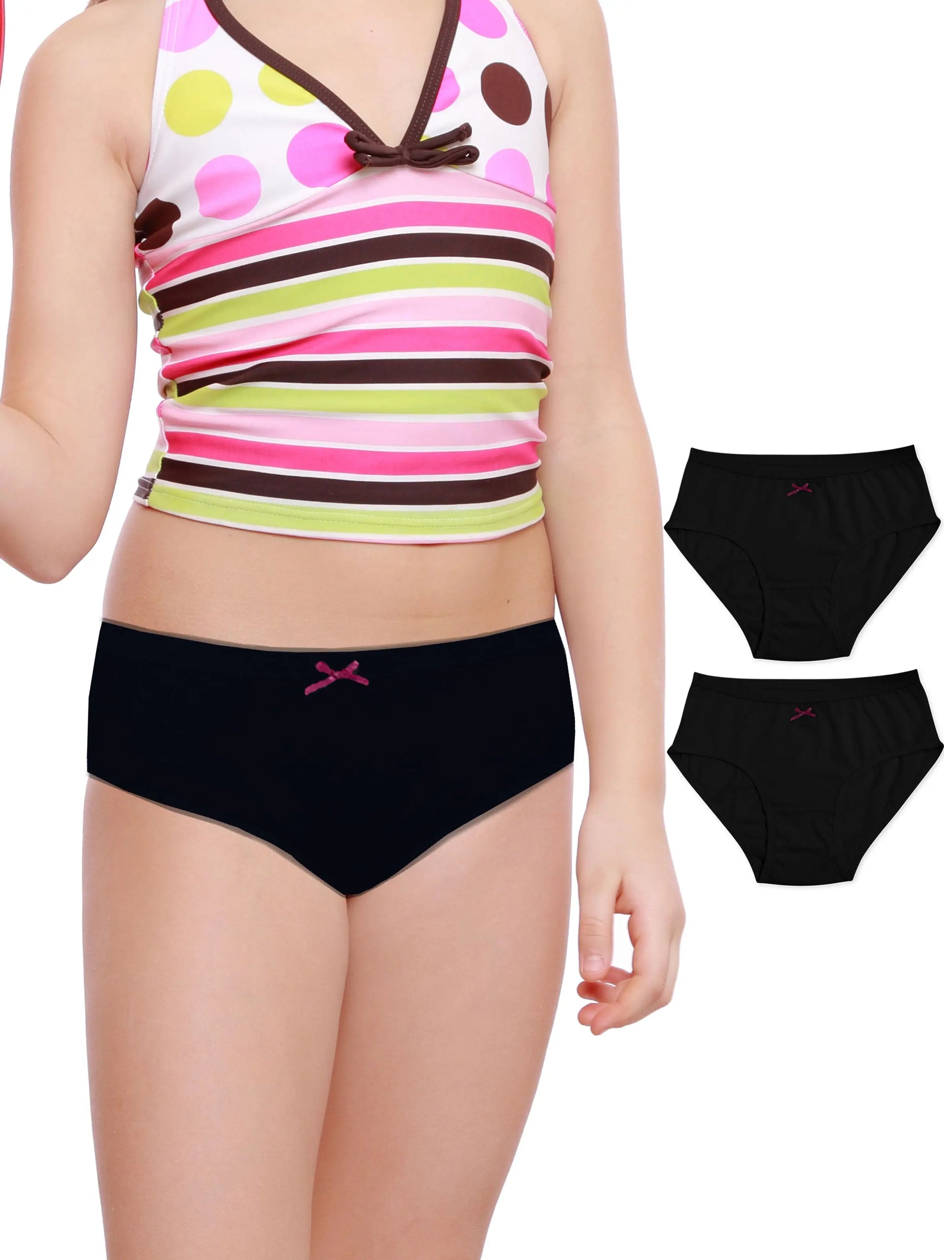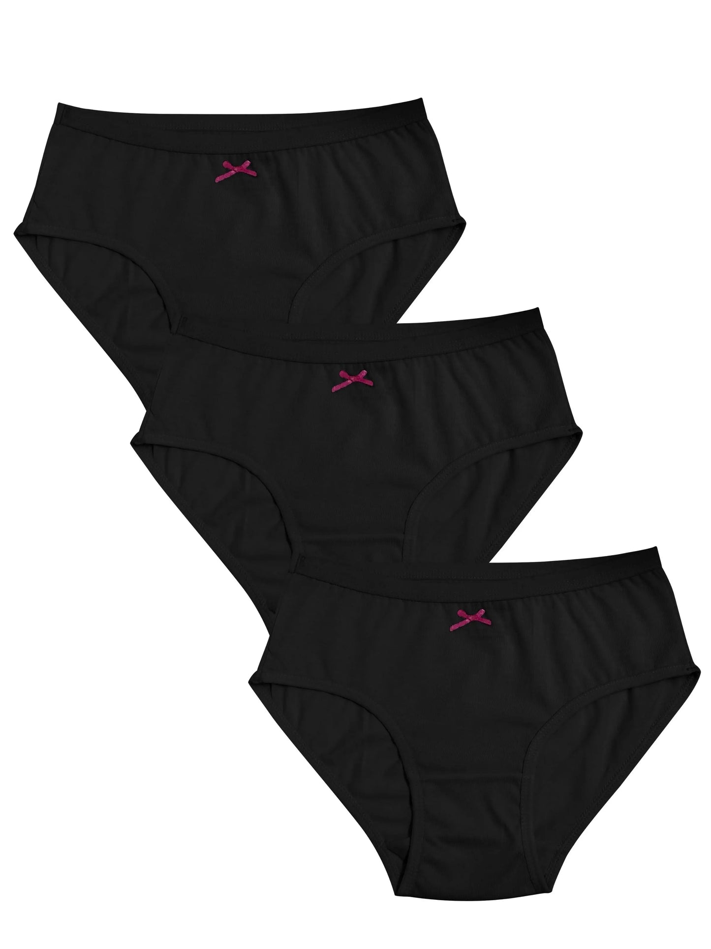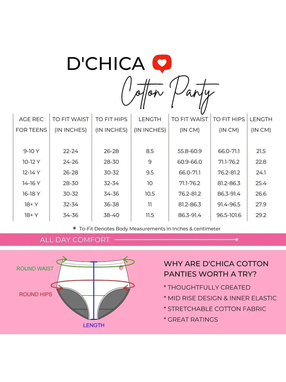 D'CHICA Essentials Cotton Hipster Briefs For Girl | Breathable | Elasticated Waistband | Black Panties Pack Of 3