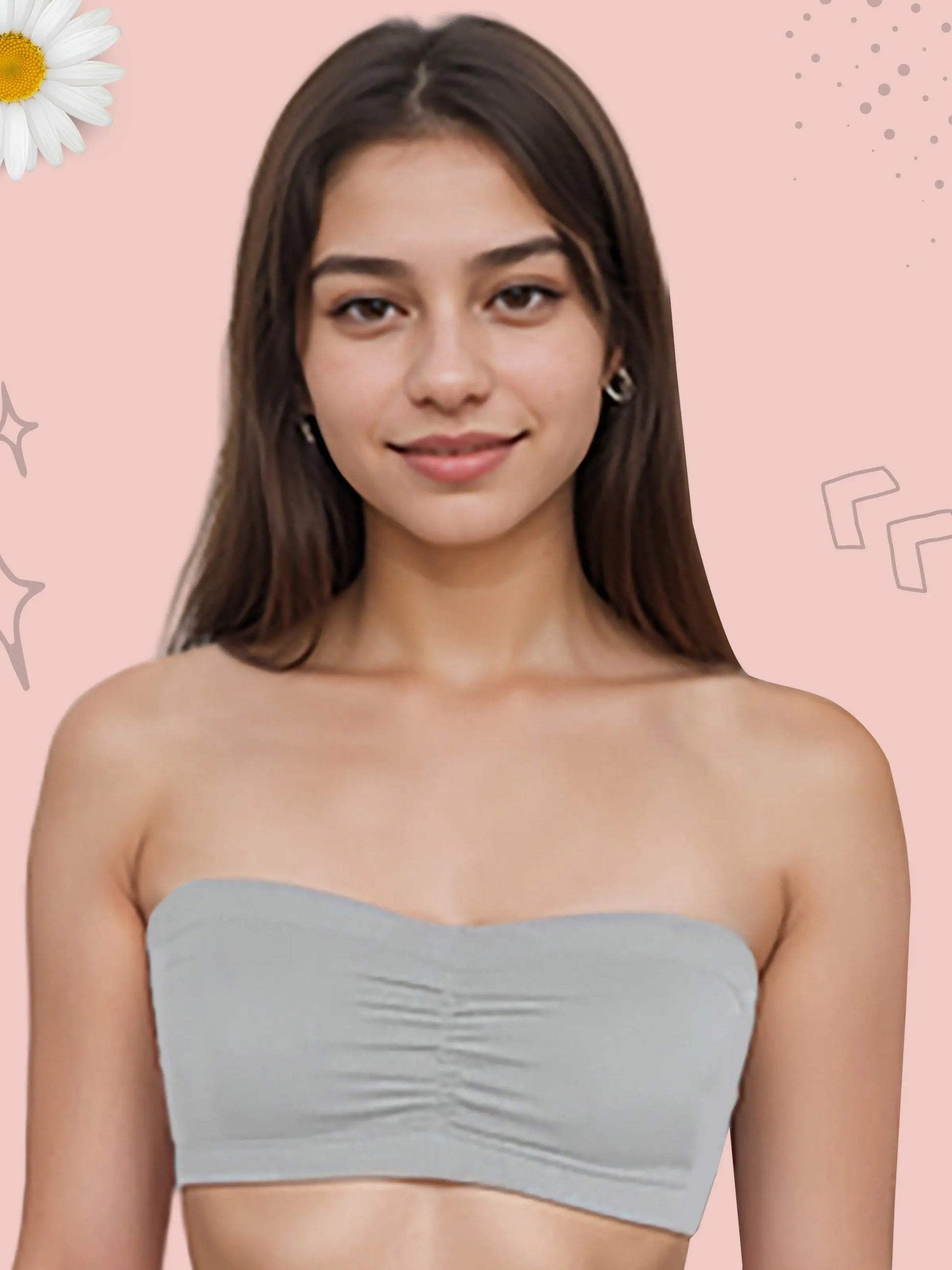 D'CHICA Essentials Cotton Strapless Tube Bra For Girls| Bandeau Bra With Removable Pads | Grey Tube Top Pack Of 1