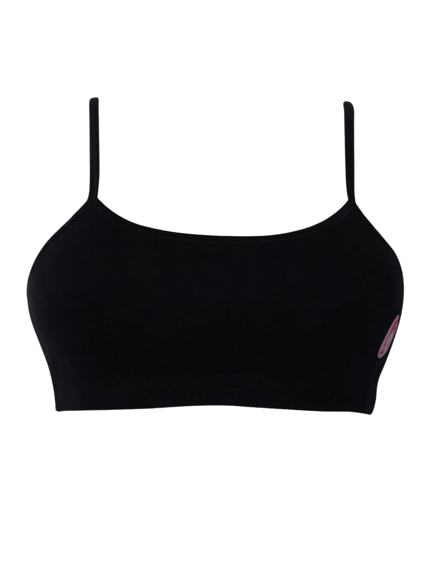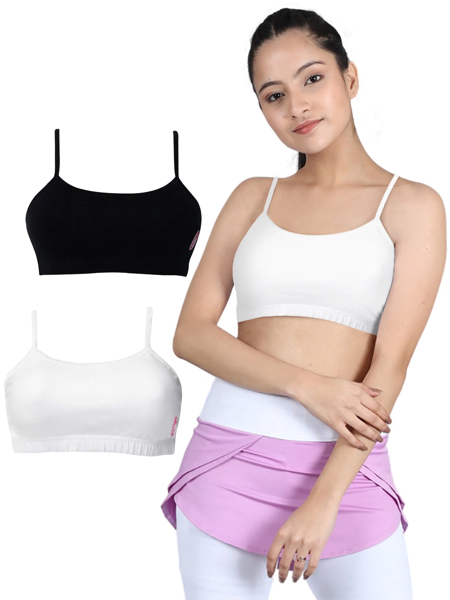 D'CHICA Essentials Double-Layer Thin Strap Cotton Athletic Bra | Non-Padded Beginner Bra | White & Black Solid Bras