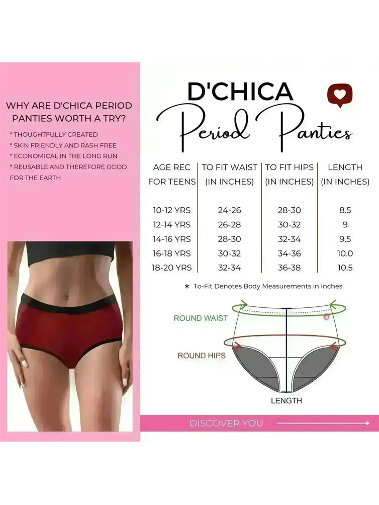 D'CHICA Essentials Lab-Tested Super Absorbent Period Panties | Anti-Microbial Lining | Overnight Protection | PFOA PFOS-Free | Reusable Menstrual Underwear