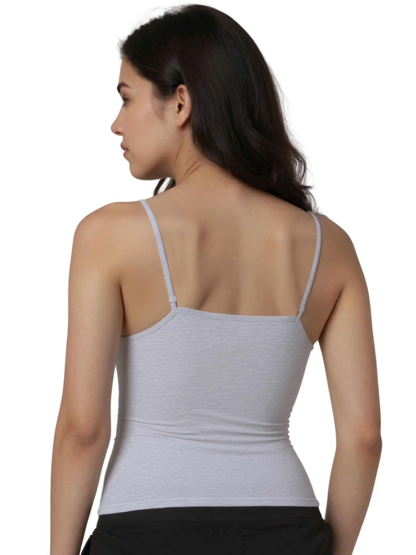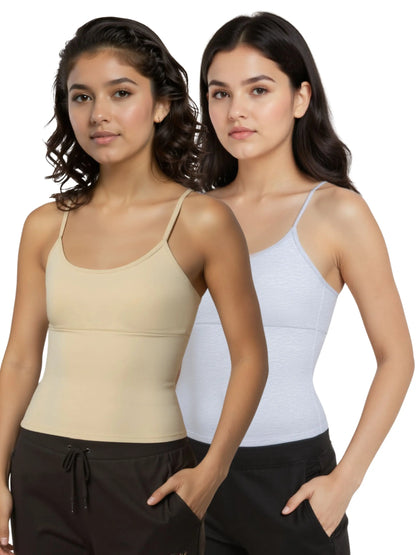 D'CHICA Essentials High Coverage Cotton Starter Camisole Bra in Grey and Skin Tone with Adjustable Straps Pack-of-2