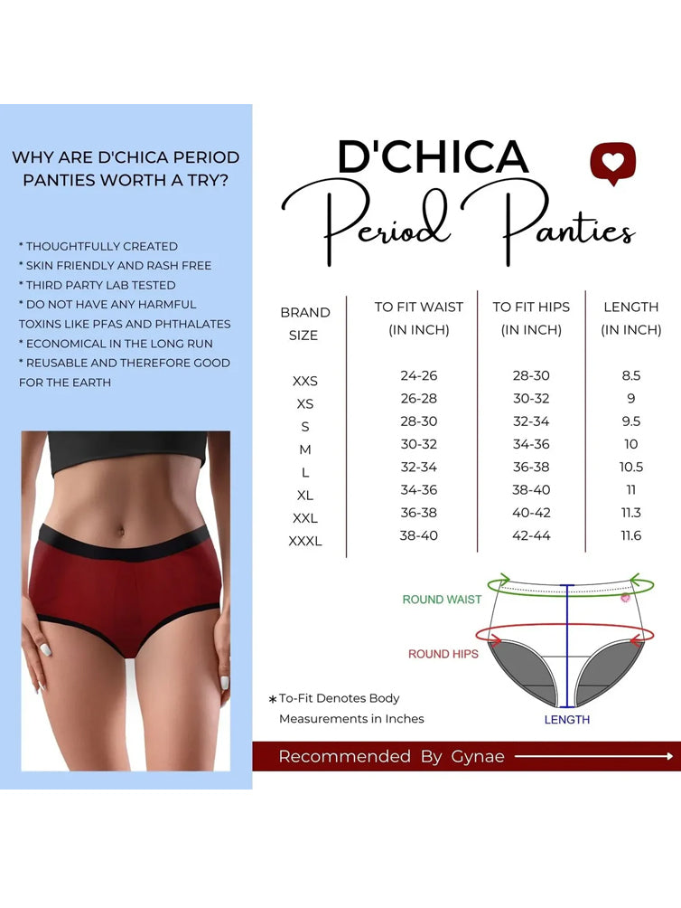 D'CHICA Essentials Lab-Tested Super Absorbent Period Panties | Anti-Microbial Lining | Overnight Protection | PFOA PFOS-Free | Reusable Menstrual Underwear