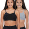 D'CHICA Essentials Thin Strap Cotton Padded Sports Bra for Girls | Removable Pads | Elasticated Underbrand | Good Support | Full Coverage Pack of 2 | Grey & Black Sports Bra