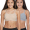 D'CHICA Essentials Thin Strap Cotton Padded Sports Bra for Girls | Removable Pads | Elasticated Underbrand | Good Support | Full Coverage Pack of 2 | Grey & Skin Sports Bra