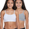 D'CHICA Essentials Thin Strap Cotton Padded Sports Bra for Girls | Removable Pads | Elasticated Underbrand | Good Support | Full Coverage Pack of 2 | White & Grey Sports Bra